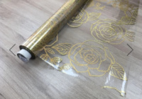 Прозора клейонка на стіл на відріз із золотими квітами стане надійним захистом для Вашого столу та поверхонь