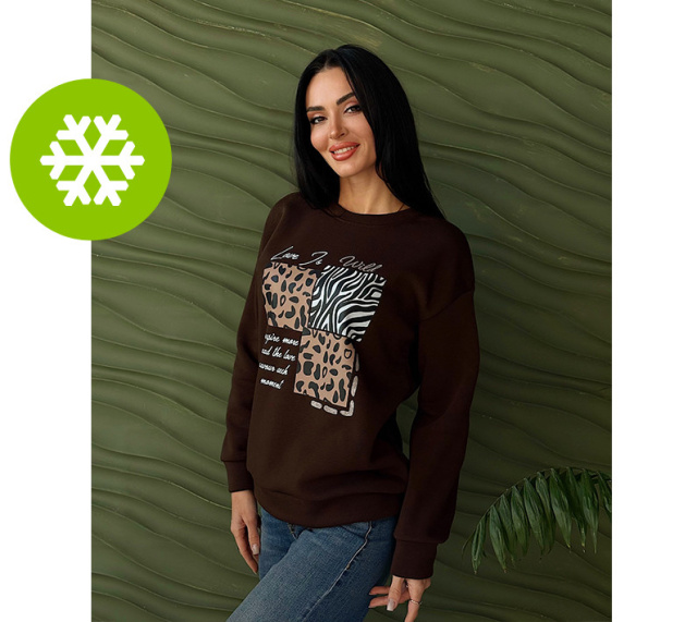 Тепла кофта худі оверсайз жіноча «Glen» | Норма та батал Шоколадний, 42-44