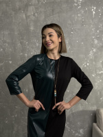 Сукня міді з екошкірою «Martina» оптом | Норма і батал Темно-зелений, 42-44