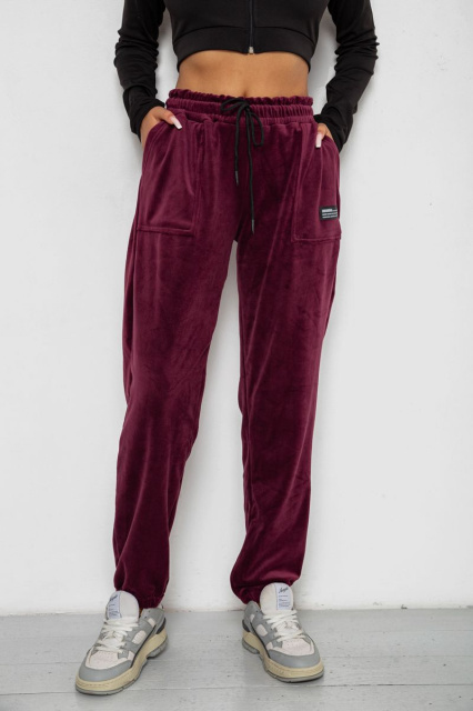Спортивные штаны велюровые женские на флисе, цвет бордовый, 238R58645