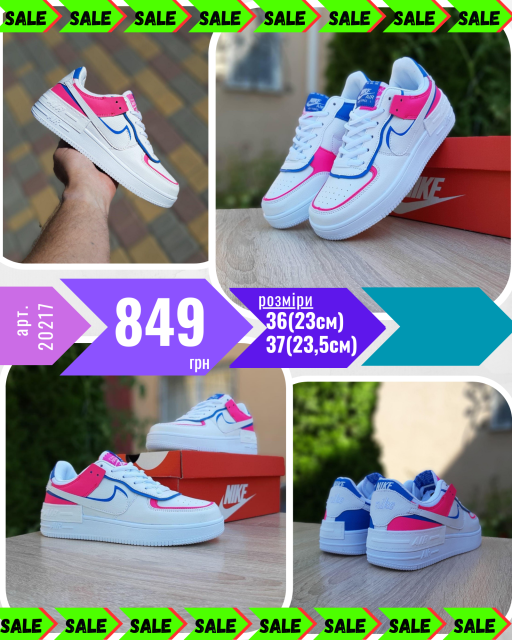 Nike Air Force 1 Shadow Белые с малиной и синим