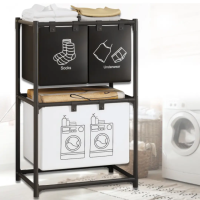 Подлоговий дворівневий кошик для білизни на 2 відділення SKLM-23 97х31х44 см