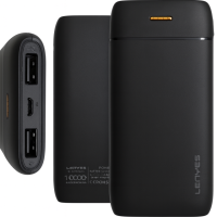 Повербанк LENYES PX167 10000 mAh с LED-индикатором и 2 USB, черный