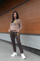 Трикотажний костюм з принтом «Nopeday» оптом | Норма Шоколадний + чорний, 42-44