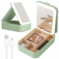 Портативный кейс-органайзер для косметики с зеркалом и подсветкой Зелёный