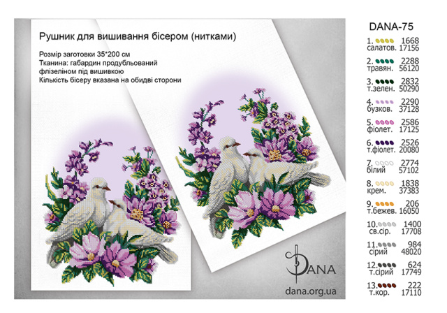 Заготовки рушників під бісер або нитки. Розмір готового виробу 35*200 см. Матеріал габардин підклеєний двома шарами флізеліну під площею зашиття. Край по периметру оброблений оверлоком. Кількість бісеру зазначена загальна (на обидві сторони рушника)