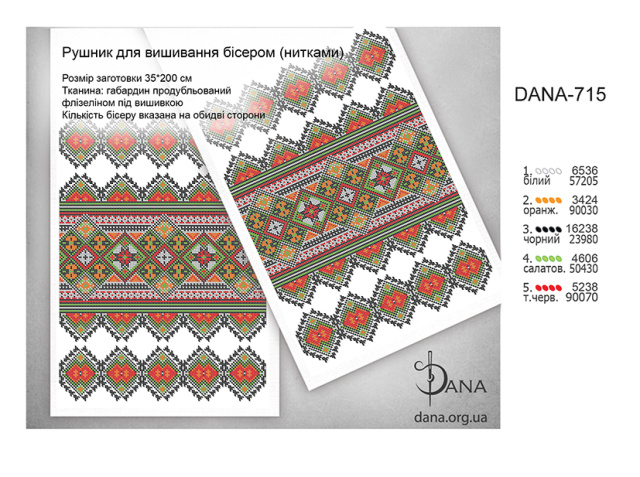 Заготовки рушників під бісер або нитки. Розмір готового виробу 35*200 см. Матеріал габардин підклеєний двома шарами флізеліну під площею зашиття. Край по периметру оброблений оверлоком. Кількість бісеру зазначена загальна (на обидві сторони рушника)