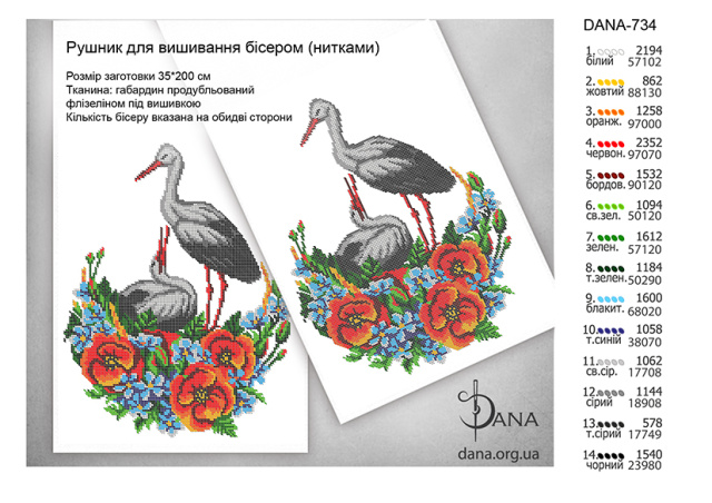 Заготовки рушників під бісер або нитки. Розмір готового виробу 35*200 см. Матеріал габардин підклеєний двома шарами флізеліну під площею зашиття. Край по периметру оброблений оверлоком. Кількість бісеру зазначена загальна (на обидві сторони рушника)