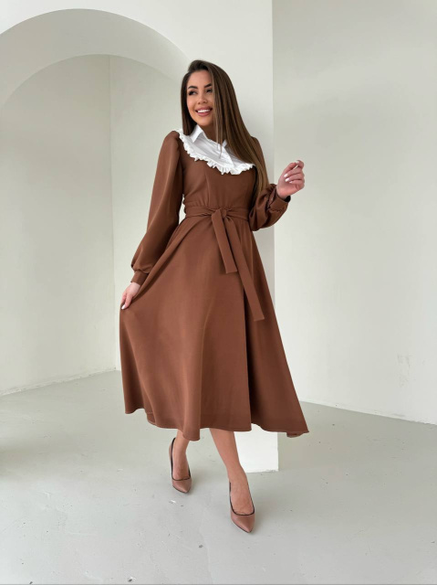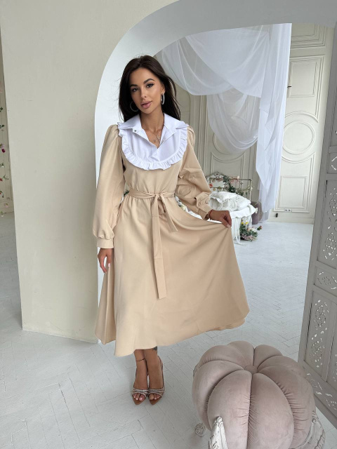Ткань – качественная костюмка. Стильное женское платье с трендовым белым воротником – идеальный выбор для тех, кто ценит элегантность и комфорт....