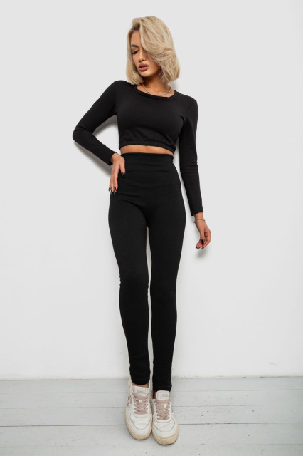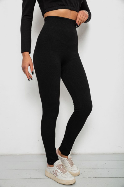 Лосини в рубчик утепленные, цвет черный, 139RA9017, Вінниця