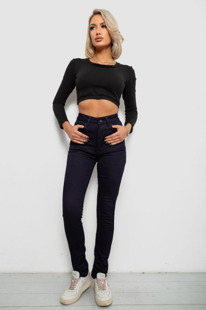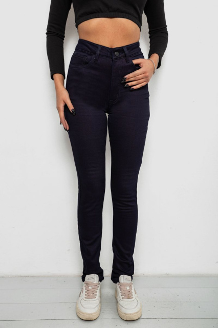 Джинсы женские однотонные на флисе, цвет темно-синий, 244RS026, Вінниця