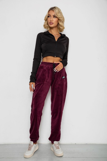Спортивные штаны велюровые женские на флисе, цвет бордовый, 238R58649-1, Вінниця