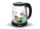 Компактний електричний чайник із стильним принтом квітки на корпусі ємністю 1,8 літра та потужністю 2400 Вт має автоматичне вимкнення при скипанні води.
