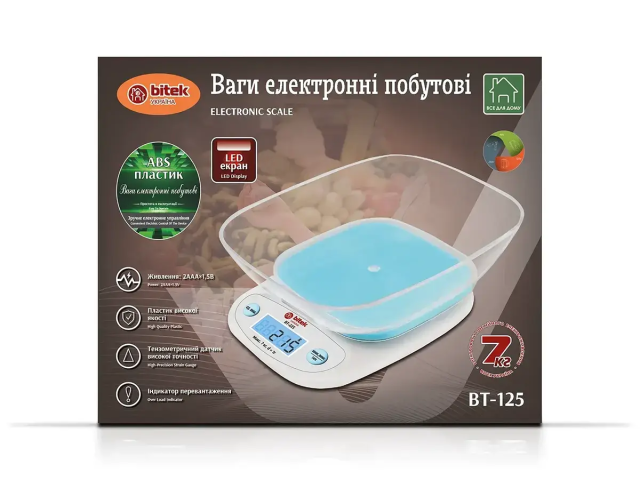 Ваги електронні побутові 7кг кухонні з прямокутною чашею BT-125, Вінниця