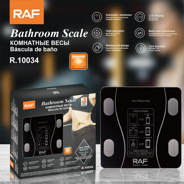 Ваги RAF R.10034 з сучасним дизайном та багатофункціональними можливостями дозволяють легко проводити аналіз ваги та тіла вдома. Завдяки поверхні із загартованого скла, РК-екрану та функції вимірювання складу тіла, це ідеальний вибір для здорового способу життя.