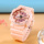 З діаметром корпусу 50 мм і товщиною 20 мм, він має класичну застібку та довжину ремінця 26 см. Рожевий колір корпусу та ремінця надає йому ніжного і привабливого вигляду. Годинник також забезпечує 12-місячну гарантію. Виробництво здійснено в Китаї.