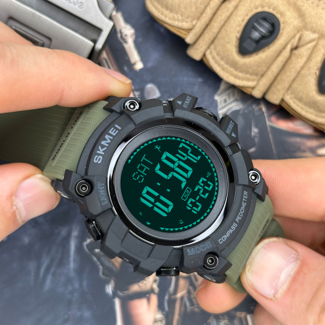 Годинник Skmei 1356AG Army Green + Compass – це стильний та функціональний аксесуар для чоловіків, який поєднує в собі спортивний та армійський дизайн. Водонепроникний до 50 метрів, він стане надійним супутником у будь-яких умовах. Корпус годинника виготовлений з полімеру, а ремінець – з міцного каучуку, що забезпечує довговічність і комфорт при носінні.