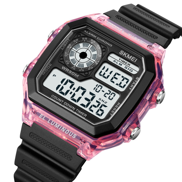 Годинник Skmei 1998PL Purple - це стильний та функціональний аксесуар, ідеальний для активного способу життя. Водонепроникний до 50 метрів, він надійно витримує водні пригоди. Корпус з полікарбонату в фіолетовому кольорі поєднується з чорним каучуковим ремінцем, створюючи унікальний дизайн. Годинник має електронний циферблат з індикацією годин, хвилин, секунд, дня тижня та числа. Його функції включають будильник, календар і секундомір, а електролюмінесцентне підсвічування дозволяє зручно користуватися ним у темряві. З квадратною формою корпуса та розміром 45 х 42 мм, модель підходить як для чоловіків, так і для жінок, ставлячи акцент на спортивний та casual стиль. Гарантія на годинник складає 12 місяців.