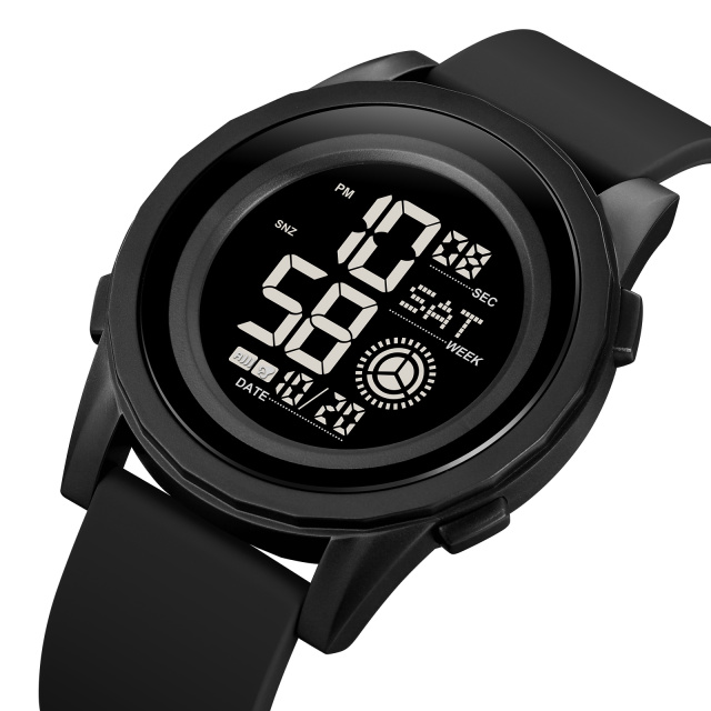 Електронний циферблат з підсвічуванням та арабськими цифрами зручно демонструє час, дні тижня, місяць та число. Skmei 2082BKBK також оснащений корисними функціями: будильником, календарем, секундоміром та можливістю другого часового поясу. Розміри годинника становлять 52,5 х 44,5 мм, вага - 46 грамів, а довжина ремінця - 25 см. Годинник є ідеальним вибором для любителів спорту та активного способу життя. Гарантія становить 12 місяців. Виготовлено в Китаї.