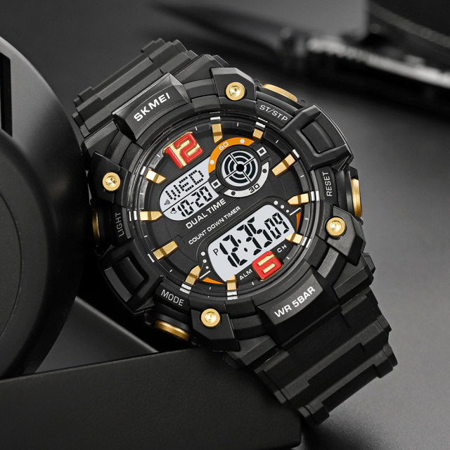 Представляємо годинник Skmei 2018GDWT Gold-White — ідеальний вибір для чоловіків, які цінують стиль і функціональність. Цей спортивний електронний годинник має водонепроникність до 50 м, що робить його придатним для активних занять. Корпус виготовлений з полімеру та має круглу форму, а чорний каучуковий ремінець забезпечує комфорт у носінні.