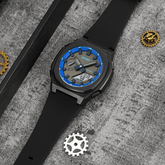Годинник Skmei 2091BKBUWT у чорному, синьому та білому кольорах - це стильний спортивний аксесуар для чоловіків. Виготовлений з полімерного корпусу