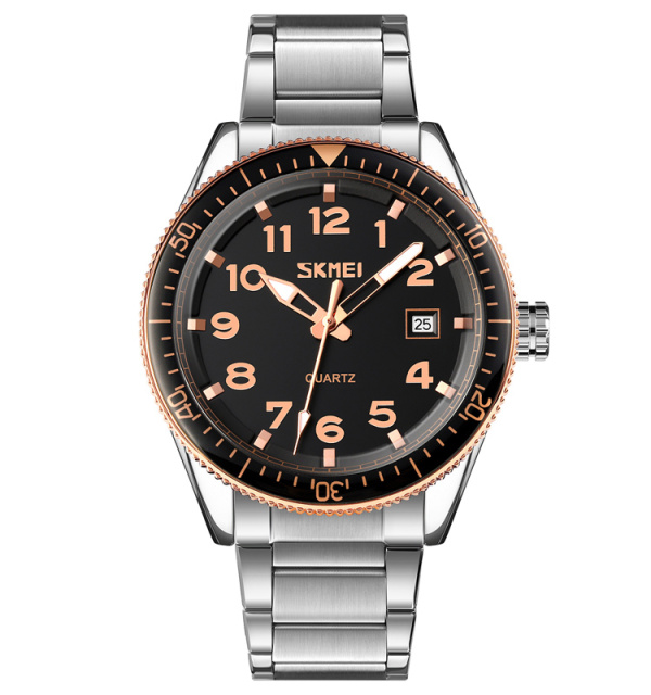 Годинник Skmei 9232SRGBK в кольорі рожевого золота та чорного – це стильний аксесуар, що поєднує елегантність і функціональність. Водонепроникність до 30 метрів дозволяє використовувати його в повсякденному житті без побоювань. Корпус виготовлений з металу, а також металічний ремінь забезпечує надійність та довговічність.