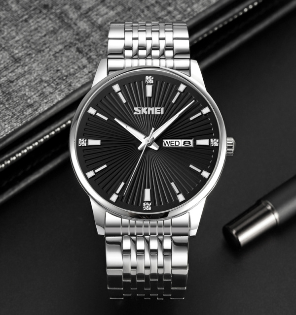 Годинник Skmei 9323SIBK Silver-Black - це стильний чоловічий аксесуар із круглим металевим корпусом сріблястого кольору. Він обладнаний кварцовим механізмом та мінеральним склом, що забезпечує високу надійність і довговічність. Модель має водонепроникність до 30 м та функцію календаря. Циферблат оснащений індикацією годин, хвилин, секунд, дня тижня та числа, що робить його практичним у використанні. Ремінець також виготовлений з металу, має ширину 20 мм та довжину 22 см. Годинник поєднує в собі елегантний класичний стиль і сучасні технології, а його люмінесцентне підсвічування забезпечує зручність у темний час доби. Гарантія - 12 місяців. Вага годинника становить 117 г. Вироблено в Китаї.