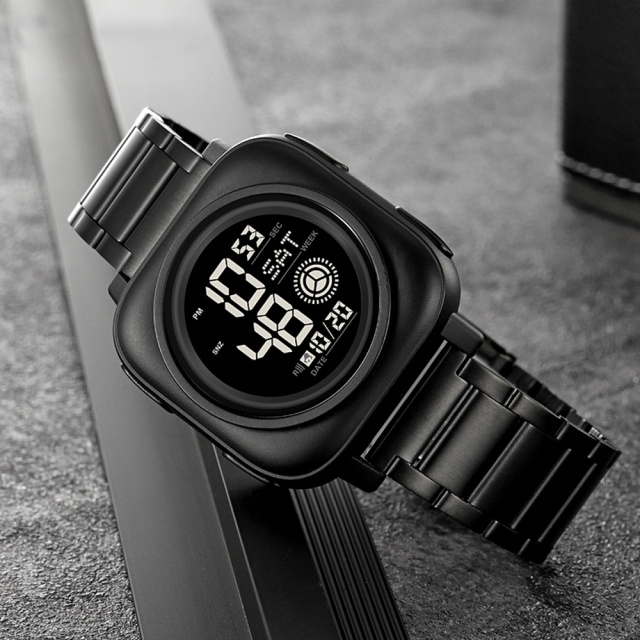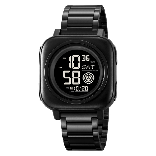 Годинник Skmei 2131BK Black - стильний та функціональний електронний аксесуар для сучасного чоловіка. Корпус і ремінець годинника виготовлені з нержавіючої сталі, що гарантує міцність і довговічність виробу. З водонепроникністю до 50 метрів, ви можете не турбуватися про вологу. Модель має квадратну форму корпусу, чорний колір та електролюмінесцентну підсвітку, що забезпечує зручне зчитування часу в темряві.