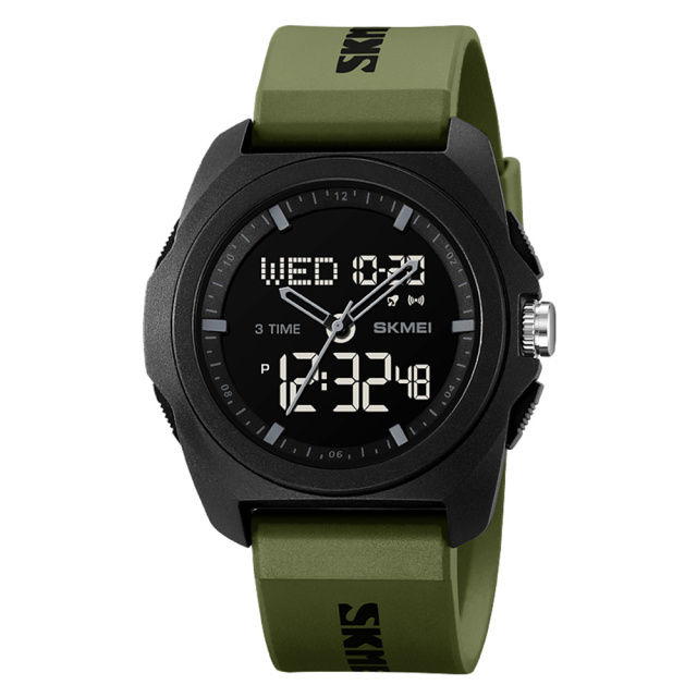 Годинники Skmei 2199AG в армійському зеленому кольорі поєднують стиль і функціональність. Водонепроникність до 50 метрів робить їх ідеальними для активного використання, а кварцовий механізм забезпечує точність в часі. Корпус виготовлений з полімеру, а ремінець з поліретану, що робить їх легкими та міцними. Модель оснащена стрілочно-електронним циферблатом з арабськими цифрами, підсвічуванням та функціями будильника, календаря, другого часового поясу та секундоміра. Розміри годинника складають 47 х 51 мм, а вага - 60 г. Гарантія на товар - 12 місяців. Виробник - Китай.