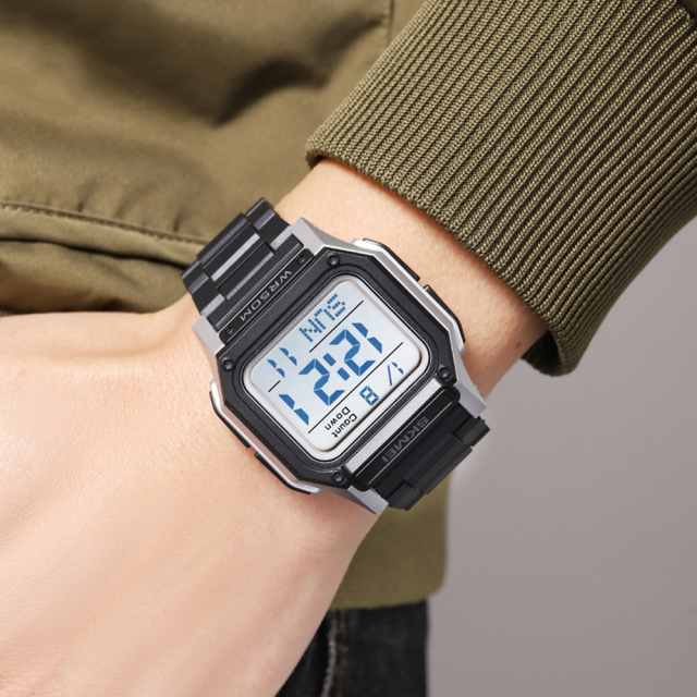 Годинник Skmei 2264BKSIWT - це стильний і функціональний аксесуар для чоловіків. Він має прямокутний корпус з поліуретану чорного та сріблястого кольору, що підкреслює його сучасний дизайн. Завдяки водонепроникності до 50 метрів, ви можете бути впевненими в його надійності.