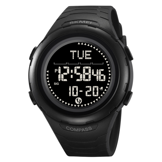 Модель оснащена корисними функціями, такими як календар, компас, секундомір, будильник, таймер, крокомір та лічильник калорій. Додаткова електролюмінесцентна підсвітка забезпечує видимість у темряві. Розміри годинника складають 47,2 х 48,2 мм, вага - 51 г. Гарантія на дану модель становить 12 місяців. Колір корпусу та ремінця - класичний чорний, що додає універсальності і стильної елегантності. Бренд Skmei гарантує високу якість та надійність у використанні.