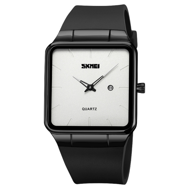 Корпус годинника має квадратну форму з діаметром 43 мм і водоймостійкість до 30 м, що робить його практичним вибором для щоденного використання. Мінеральне скло захищає циферблат, на якому чітко відображаються години, хвилини та секунди, а люмінесцентна підсвітка дозволяє зручно зчитувати час навіть у темряві.