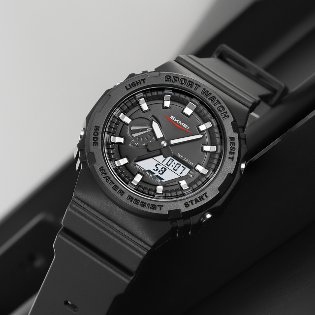 Годинник оснащений кварцовим механізмом та комбінованим стрілочно-електронним циферблатом, що відображає години, хвилини та секунди. Додаткові функції, такі як таймер і календар, роблять його ще більш зручним у використанні. Їдкі чорний колір корпусу та ремінця з каучуку доповнює спортивний стиль, а довжина ремінця 25 мм забезпечує комфортну посадку на руці.