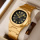 Годинник має круглу форму корпусу діаметром 43 мм, виконаного зі сталі, що забезпечує йому стійкість і довговічність. Мінеральне скло надійно захищає циферблат з індексами та арабськими цифрами, а кварцовий механізм гарантує точність у вимірюванні часу.