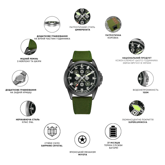 Awarder Embroidery Black-Army Green Khaki Battery 10ATM, Вінниця