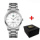Корпус годинника виготовлений з металу із сріблястим покриттям, а ремінець з нержавної сталі надійно фіксує його на зап’ясті, надаючи стильної елегантності. Кругла форма корпусу з діаметром 42 мм та мінеральним склом забезпечує стильний вигляд, а класичний стрілочний циферблат з індексацією годин, хвилин та секунд доповнює його функціональні можливості.