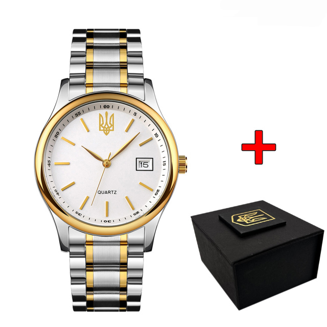 Дозвольте собі прикрасити свій стиль елегантним і водночас практичним годинником Awarder 023 Тризуб. Цей унісекс аксесуар має круглу форму корпусу діаметром 42 мм, виконаний зі стійкого до корозії металу, з стильним золотистим відтінком. Ремінець з нержавіючої сталі сріблястого кольору не лише додає елегантності, але й забезпечує комфорт під час носіння.