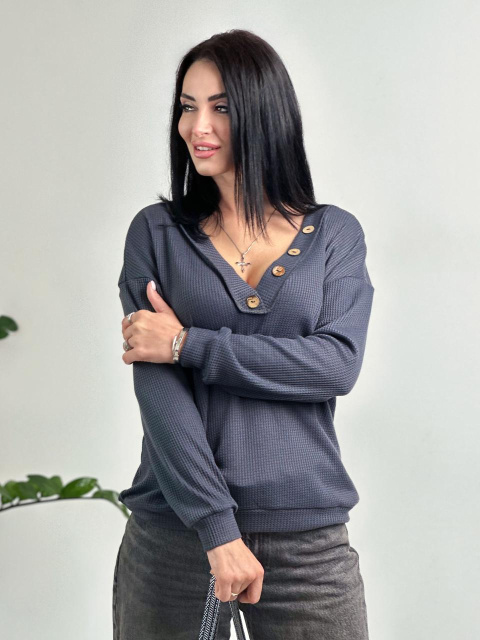 Жіночий пуловер з гудзиками «Pearl» оптом | Батал | Розпродаж моделі Графіт, 50-52, Вінниця