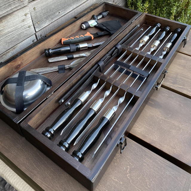 Этот набор включает шампура с лезвиями, изготовленными из высококачественной сертифицированной нержавеющей стали, которая гарантирует долговечность, прочность и стойкость к коррозии на протяжении многих лет.
