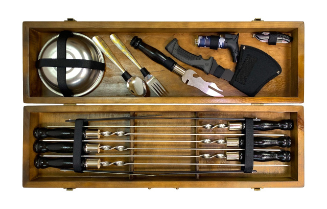 Ручки шампуров выполнены из прочного дуба, который имеет не только элегантный вид, но и комфортное ощущение в руке. Благодаря своей природной прочности деревянные ручки обеспечивают безопасность и удобство при готовке.
