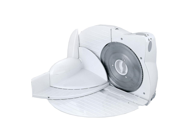 Острый нож из нержавеющей стали абсолютно безопасен, так как имеет блокировку включения детьми. Слайсер станет не только превосходным помощником, но и отличным украшением вашей кухни.