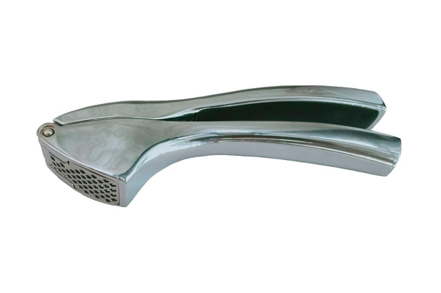 Пресс для чеснока Maestro MR 1569 . Рабочая поверхность в форме прямоугольника с круглыми отверстиями. Чеснокодавка поможет раздавить чеснок в процессе приготовления пищи, удобна в использовании и легко моется.