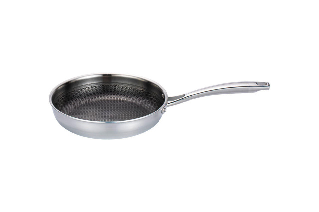 Профессиональная сковорода Maestro MR 1224-26 диаметром 26 сантиметров. Корпус сковороды Maestro MR 1224-26 имеет 3 слоя: внутренний слой изготовлен из текстурированной нержавеющей стали с антипригарным покрытием устойчивым к механическим воздействиям (можно использовать металлические лопатки), средний слой - высококачественный алюминий способствует быстрому и равномерному распределению тепла, наружный слой - нержавеющая сталь обладающая магнитными свойствами. Подходит для всех источников тепла включая индукцию.