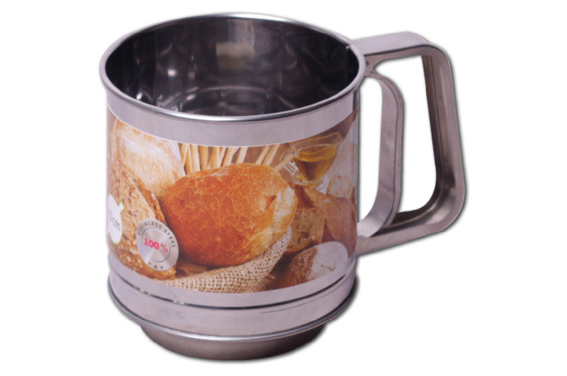 Кружка-сито Kamille – отличное приспособление для просеивания муки и других сыпучих продуктов. Кружка-сито выполнена из высококачественной нержавеющей стали и оснащена одинарным ситовым дном и специальной ручкой, внутри которой находится пружинка, благодаря чему Вы сможете просеять нужный продукт с помощью легких нажатий.