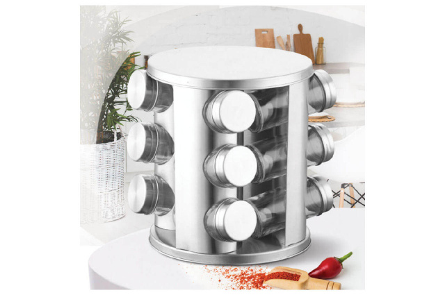 Набор Maestro MR 1725 состоит из 12 ёмкостей для специй объёмом 100 мл на стойке, баночки изготовлены из стекла с закручивающейся стальной крышкой.