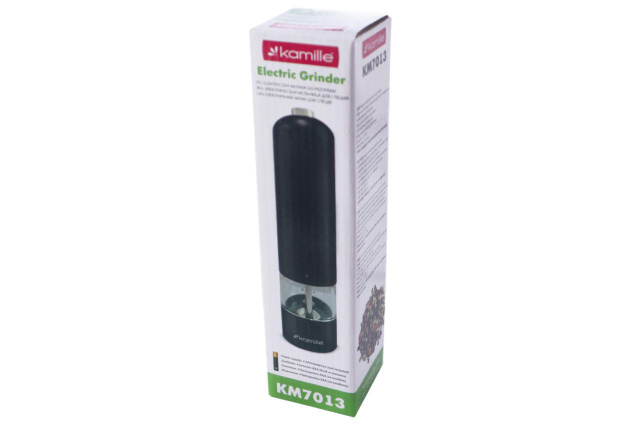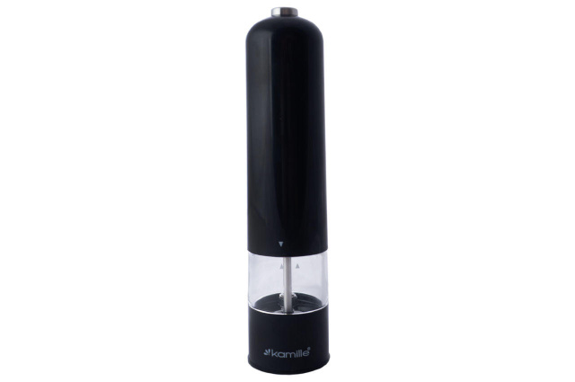 Измельчитель для специй электрический Kamille – электрическая мельница для перца (перцемолка), для большой соли и других специй. Классическая форма в современном исполнении. Питание – 4 батарей ААА.