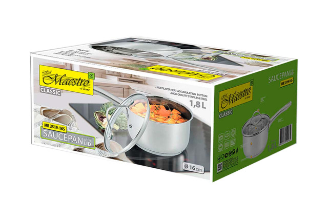 Ковш нержавеющий Maestro 160 мм x 1.8 л с крышкой (MR-3519-16S), Вінниця