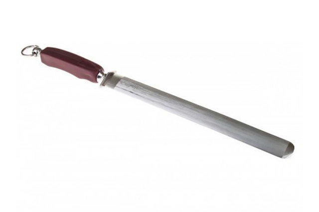 Мусат профессиональный (точило для ножей) Empire с полуовальным сечением. Инструмент редактирования лезвий ножей. Предназначен для профессионального и домашнего интенсивного использования. Ручка усилена, с подвесным кольцом. Легкий в уходе, не впитывает запахи и не окрашивается. Можно мыть в посудомоечной машине.
