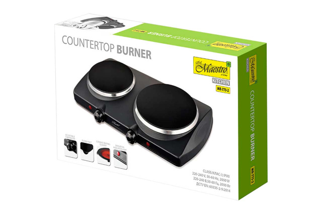 Электроплиту Maestro MR-773-2 можно с легкостью транспортировать в любое подходящее место, ведь ее работоспособность зависит исключительно от наличия сети электропитания. Плита имеет 2 конфорки.