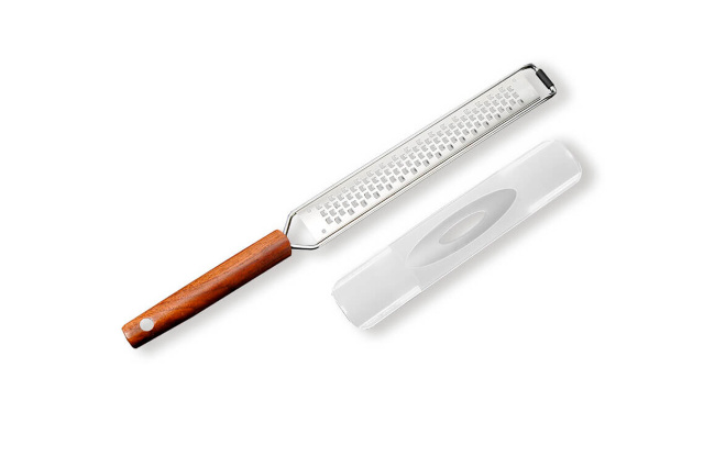 Плоская односторонняя терка подходит для натирания пармезана, цедры, шоколада, чеснока. Имеет ножку, на которую удобно опирать терку и с помощью которой можно размещать ее над посудой.